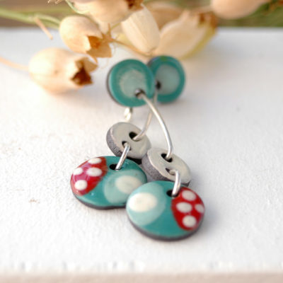 Materiales de alta calidad. Hipoalergénico. Utilizo arcilla negra y esmaltes cerámicos no tóxicos. Cada pieza está pintada a mano, por lo que puede haber una pequeña diferencia.