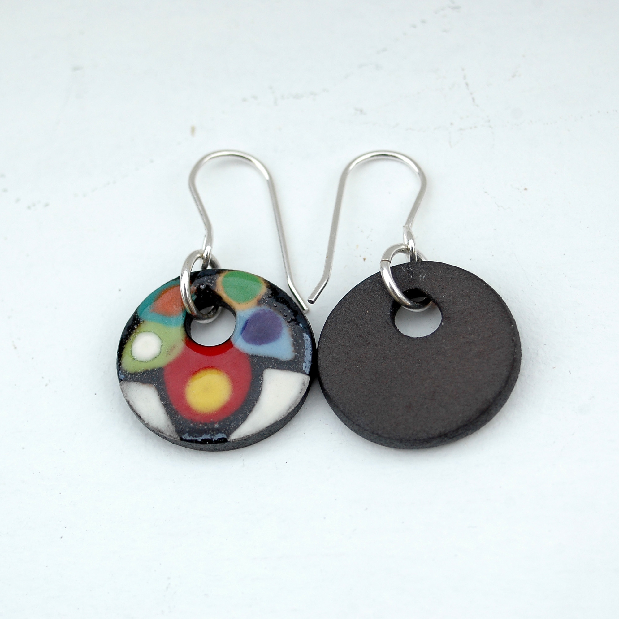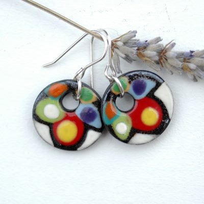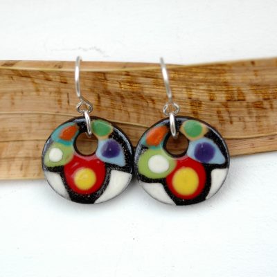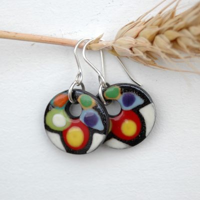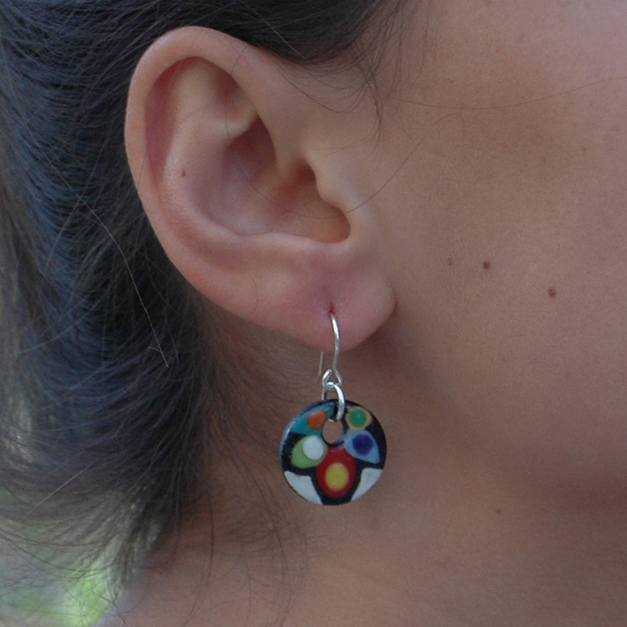 Pendiente de una pieza arito pequeño multicolor. Metales: Plata de Ley.