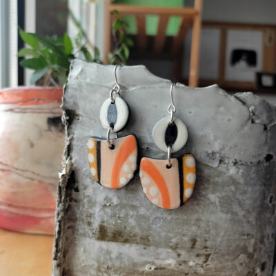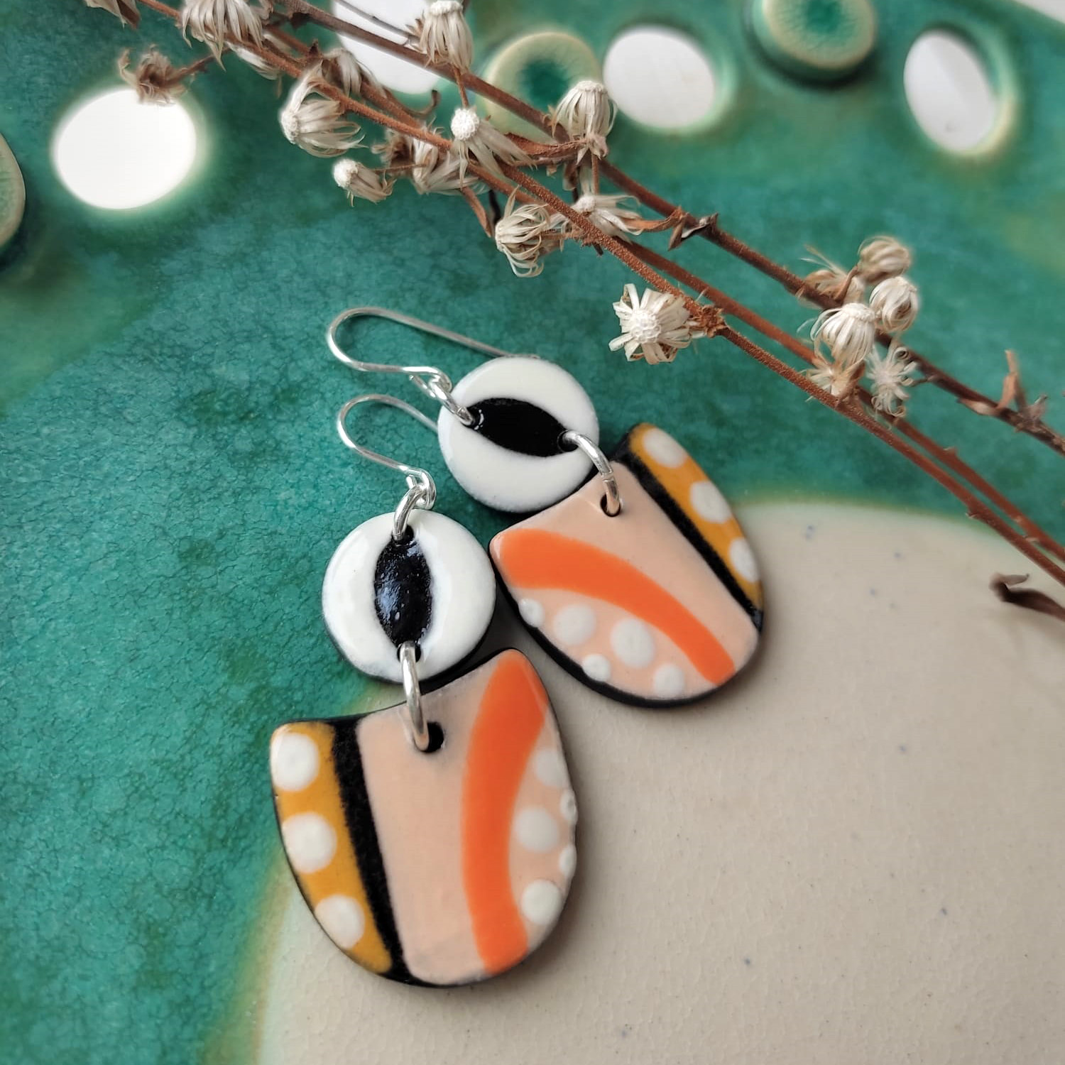 Pendientes de dos piezas Anaranjados con toques en Blanco y Negro.