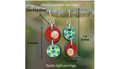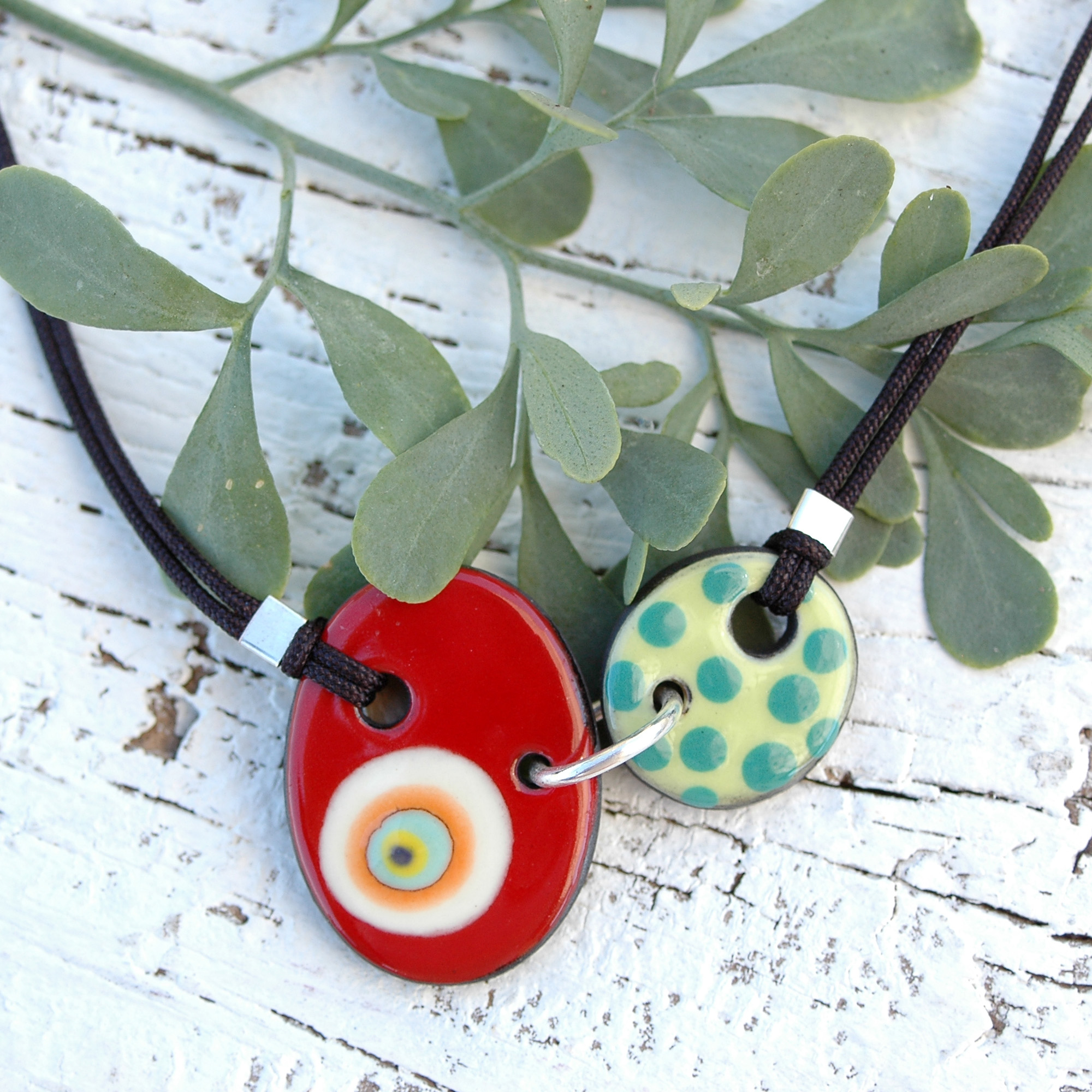 Materiales de alta calidad. Hipoalergénico. Utilizo arcilla negra y esmaltes cerámicos no tóxicos. Cada pieza está pintada a mano, por lo que puede haber una pequeña diferencia.