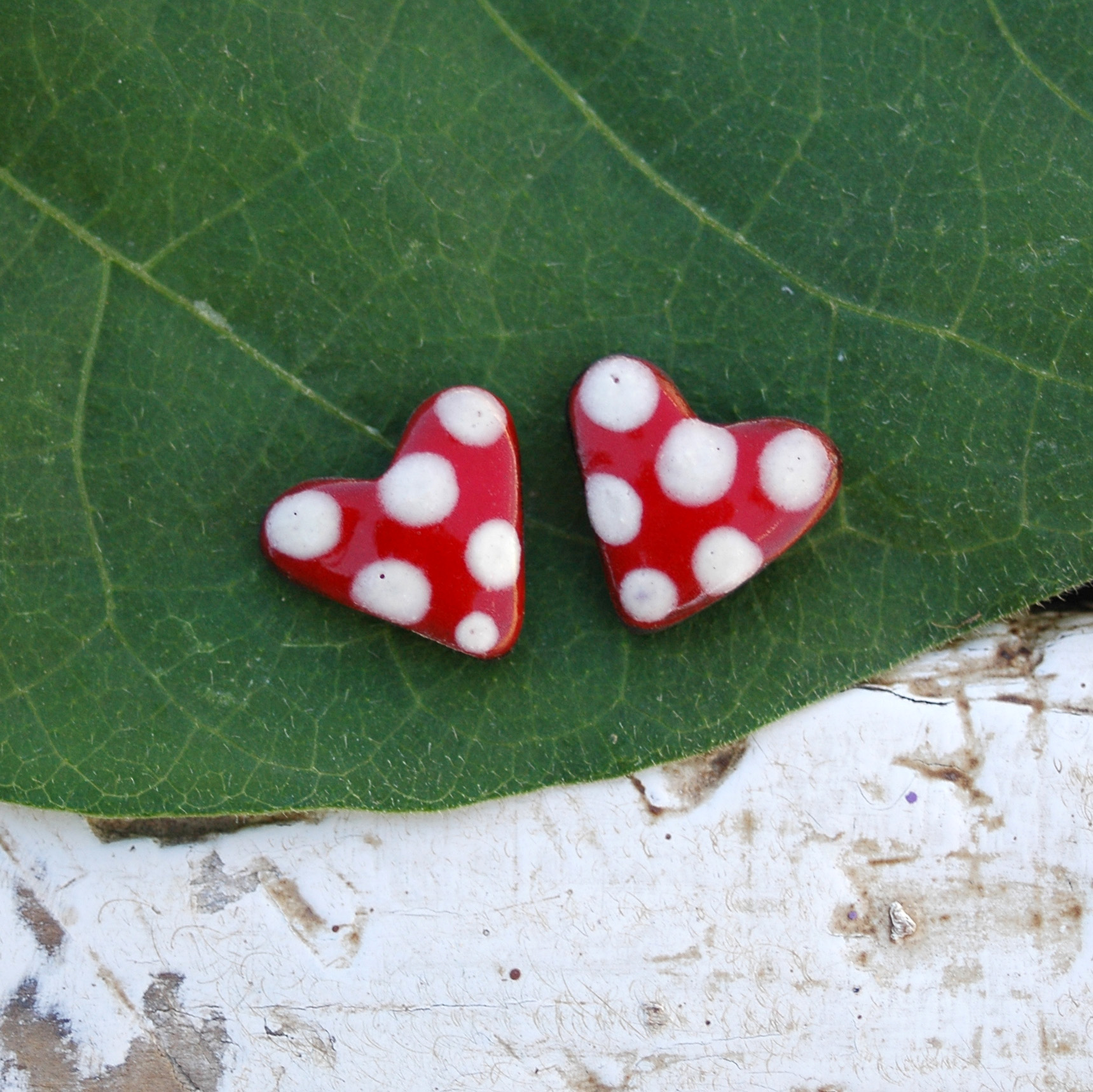 Pendientes de presión corazoncito de lunares.