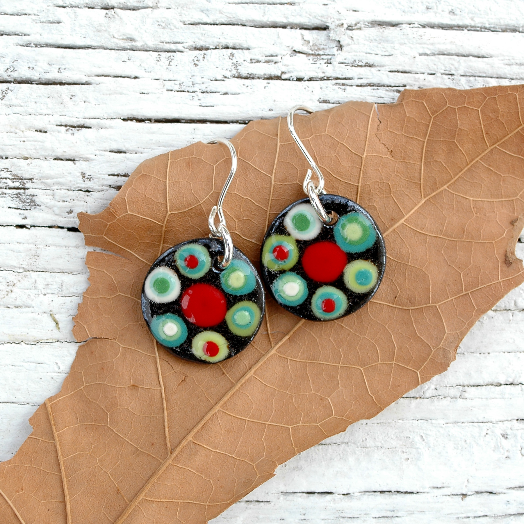 Son muy elegantes, sobre el fondo negro destacan con alegría los colores verde y rojo. Cuando los uses, tu rostro se iluminará y te llenará de energía. Son joyas únicas y llenas de amor. No te cansarás de llevarlos todos los días. Los metales son de plata hipoalergénica, por lo que evitarás lastimarte y podrás disfrutarlos con tranquilidad.