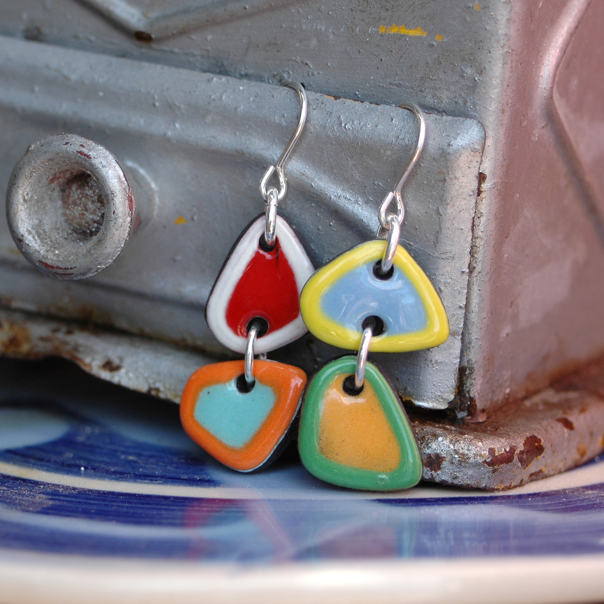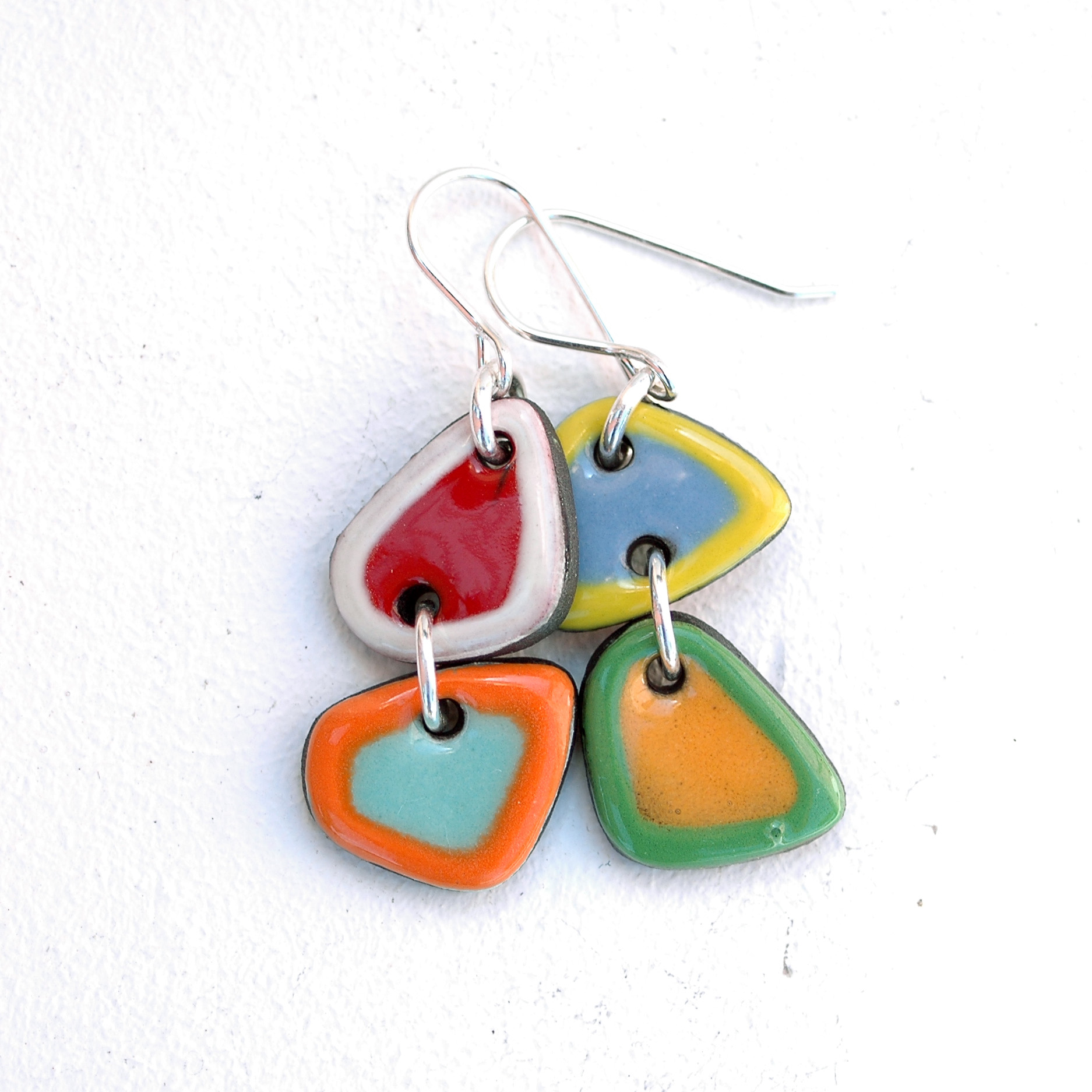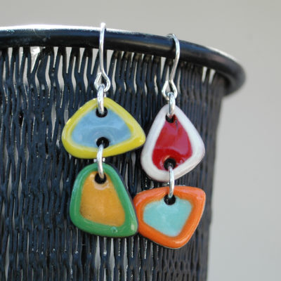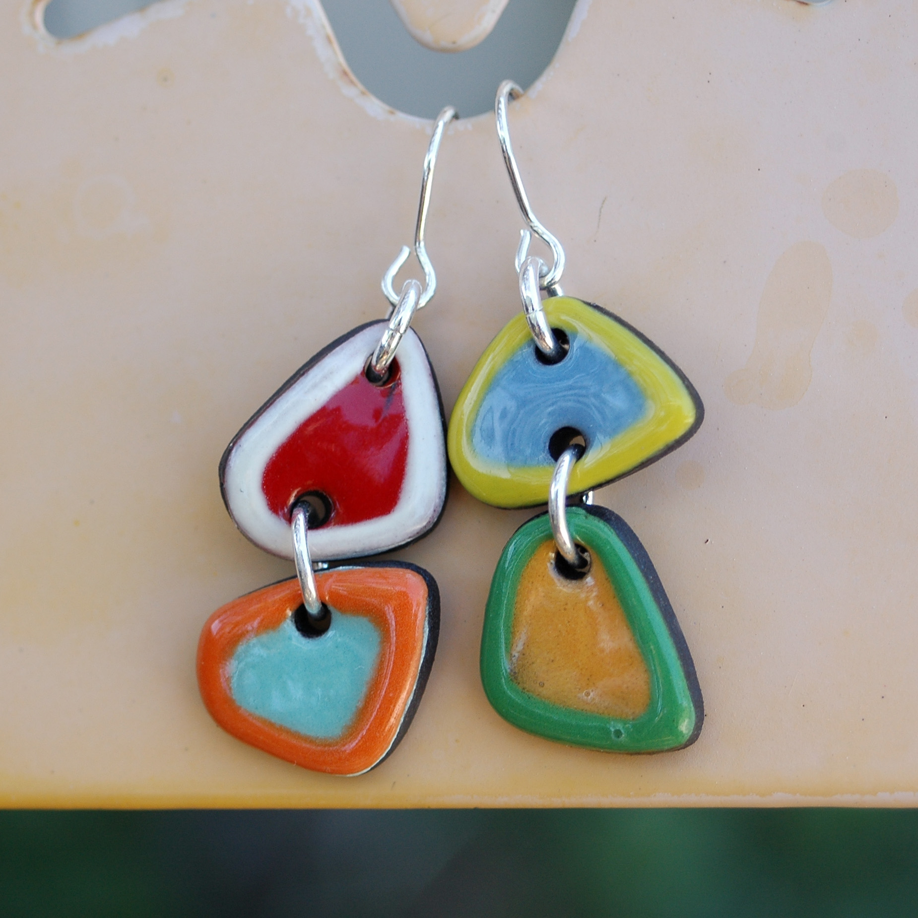 Coloridos pendientes de dos piezas con stma. de cierre de gancho.