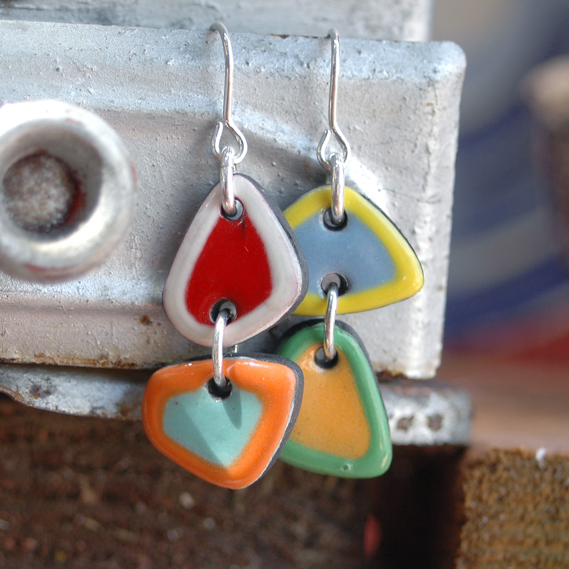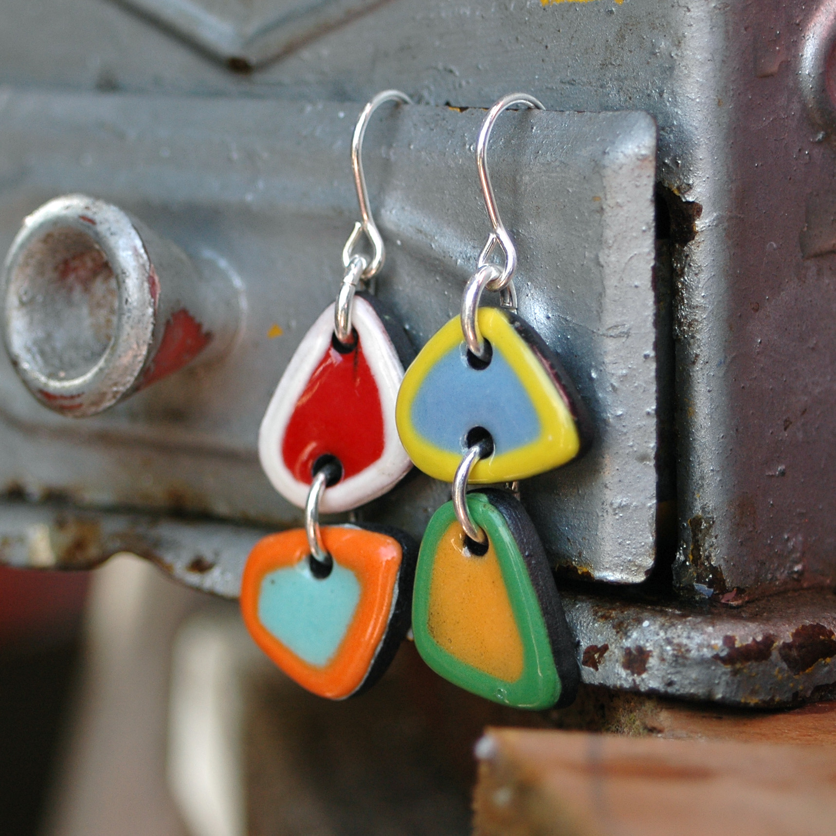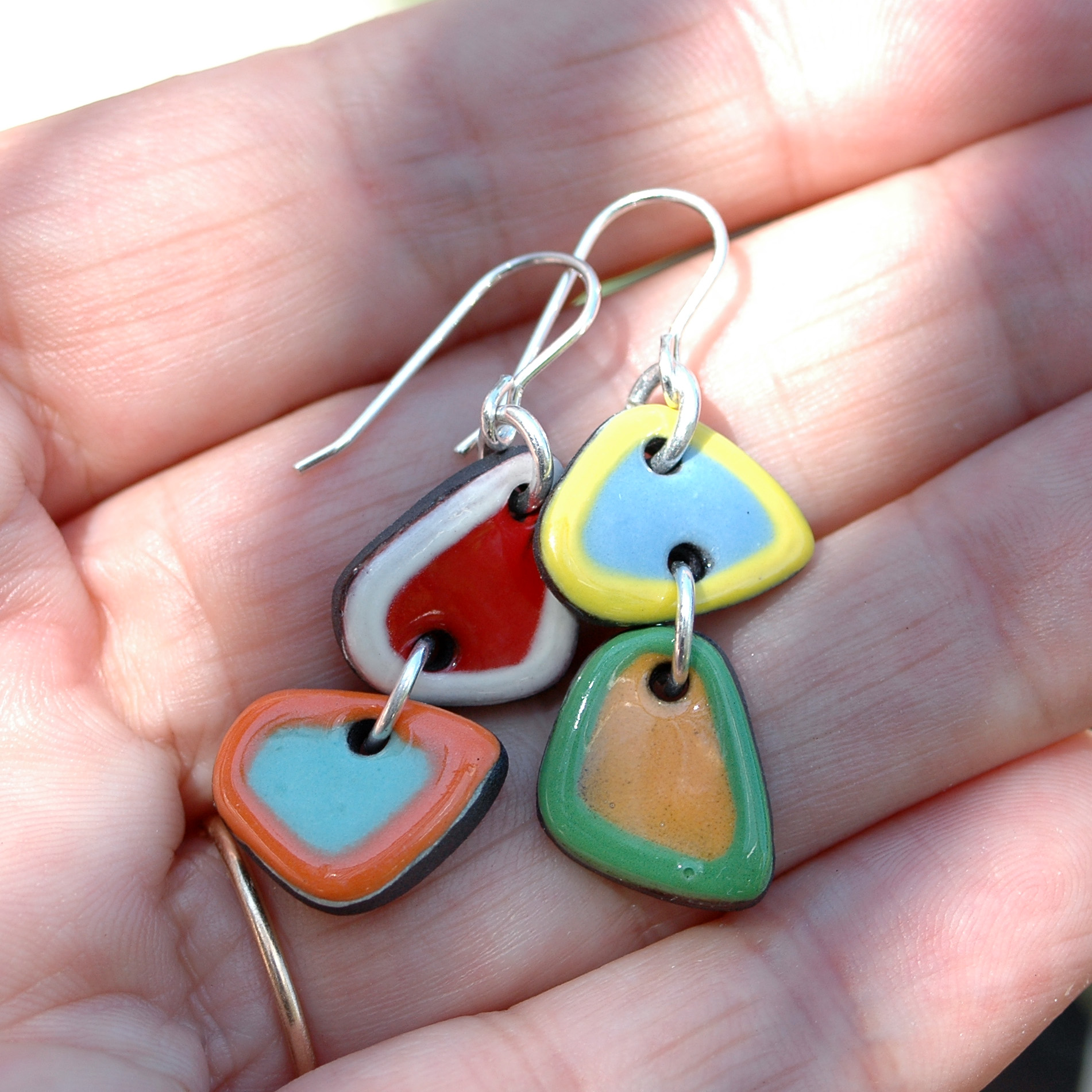 Coloridos pendientes de dos piezas con stma. de cierre de gancho.