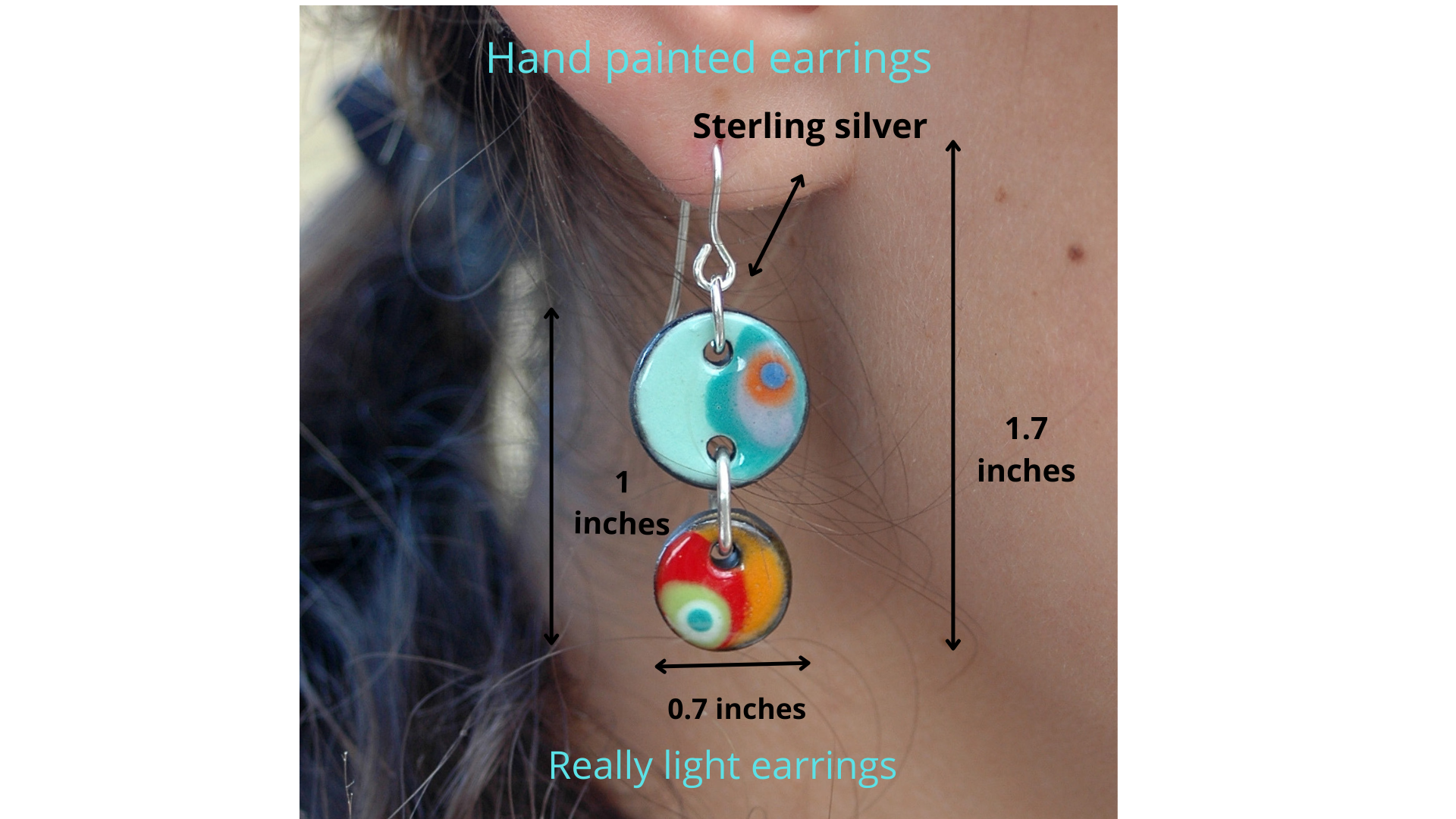 Son muy ligeros. El gancho y las anillas de los pendientes son de plata de ley. Incluyo unos pequeños cierres de silicona para no perderlos.