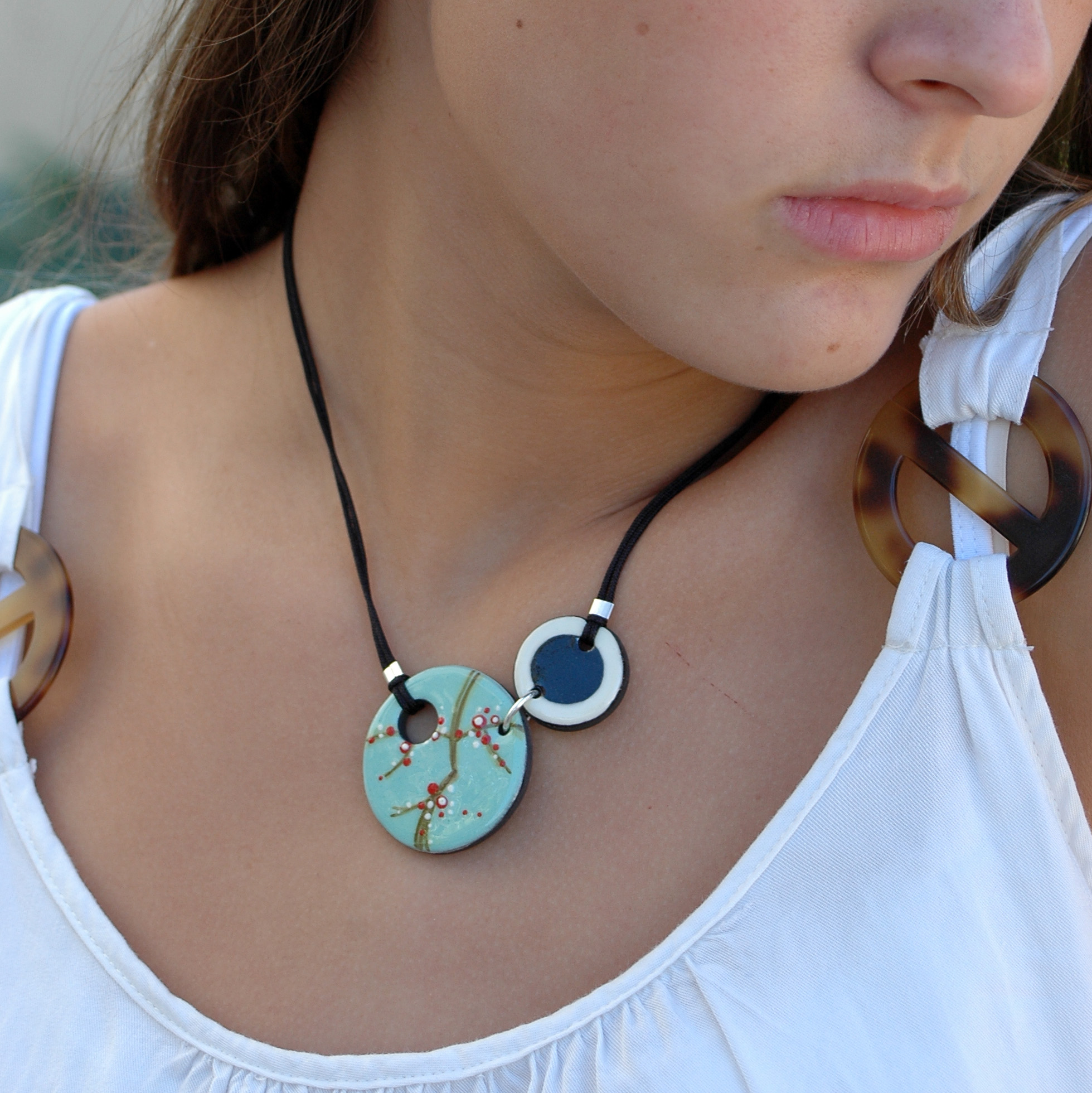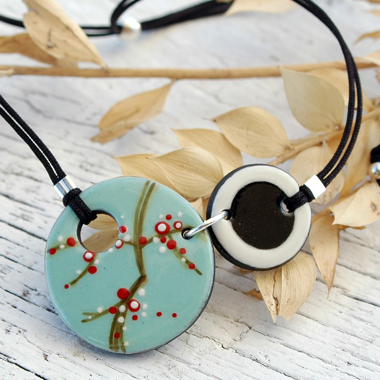 Materiales de alta calidad. Hipoalergénico. Utilizo arcilla negra y esmaltes cerámicos no tóxicos. Cada pieza está pintada a mano, por lo que puede haber una pequeña diferencia.