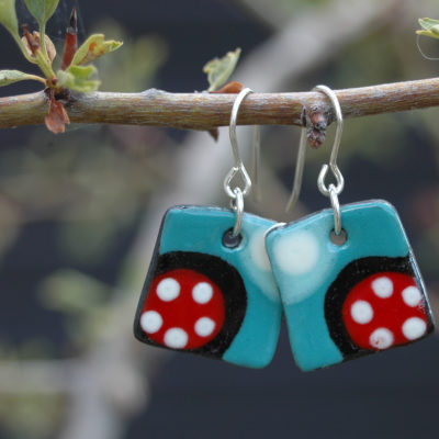 Todas mis piezas las realizo a mano, desde el modelado de la arcilla, los diseños pintados con vidriado cerámico y el montaje. Cocción del barro en horno cerámico a temperatura de 1140º C.